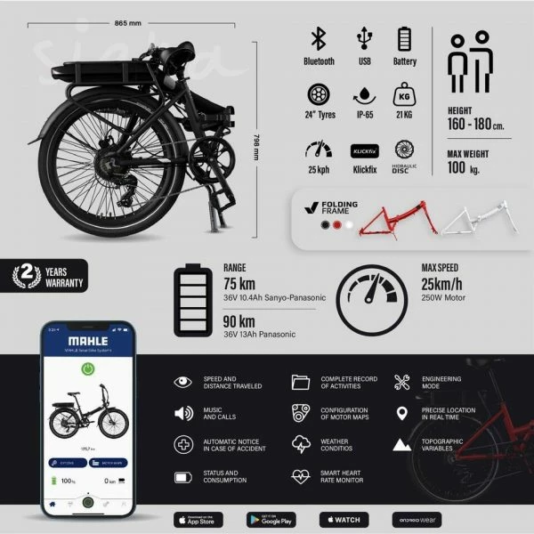 VÉLO CONNECTÉ MAHLE Smartbike®* est le contrôle absolu de votre vélo électrique et de l’environnement qui vous entoure. Connectez-vous par Bluetooth avec l’APP MySmartbike (iOS / Android) et accédez à toutes les informations : hauteur, vitesse, calories, etc. disponibles sur votre smartphone en temps réel.