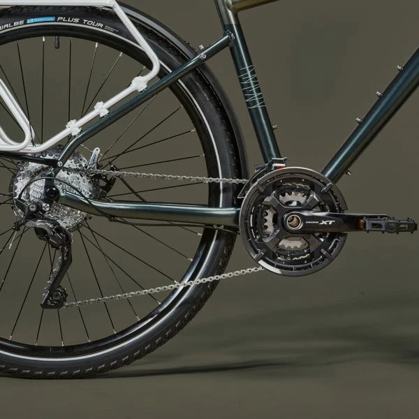Le Riverside Touring 900 est maintenant équipé de pneus Schwalbe Marathon polyvalents pour route et chemin. Ils remplacent les Schwalbe Marathon Plus suite à des problèmes d’approvisionnement. Les Marathon disposent d’une bande anti-crevaison offrant un score Schwalbe de 5/7 pour un poids de 985g par pneu.