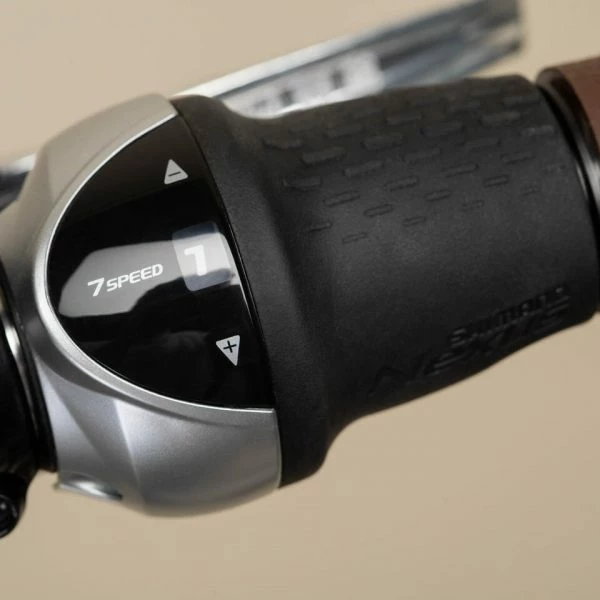 Moyeu à 7 vitesses intégrées Shimano Nexus actionné par poignée tournante.